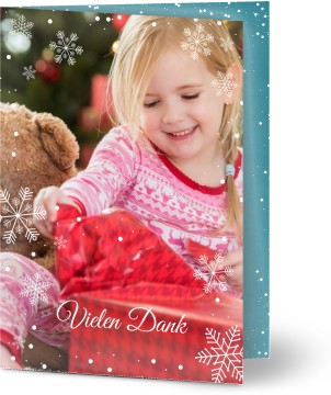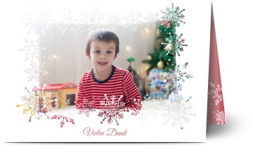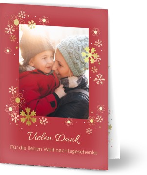 Dankeskarten zu Weihnachten - Verbreiten Sie die Freude und den Geist von Weihnachten mit personalisierten Weihnachts-Dankeschön-Karten. Stöbern Sie in unseren Designs oder fügen Sie unseren hochwertigen Karten Ihre eigene Note hinzu! Weihnachtliche Dankeskarten sind die perfekte Wahl, um diese festliche Jahreszeit und den Anlass des selbstlosen Gebens zu feiern. Und wie könnte man seine Dankbarkeit in der Weihnachtszeit besser zum Ausdruck bringen als mit einer Dankeskarte, die von Herzen kommt. Ob für ein aufmerksames Geschenk, ein köstliches Essen oder einfach nur für die Anwesenheit eines Menschen - das Versenden von Dankeskarten zu Weihnachten ist eine aussagekräftige Art, Wertschätzung zu zeigen. Und mit den vielen Personalisierungsoptionen, die bei Optimalprint zur Verfügung stehen, können Sie Ihre Dankeskarten zu Weihnachten so einzigartig und persönlich gestalten, wie es Ihnen beliebt. In diesem Artikel stellen wir die verschiedenen Arten von Danksagungskarten aus unserer Weihnachtskarten-Kollektion vor, geben Anregungen für Ihre Grußbotschaften und Tipps, wie Sie Ihre Karten zu etwas ganz Besonderem machen können. Lassen Sie uns also ein wenig Weihnachtsstimmung und Dankbarkeit verbreiten! Weihnachts-Dankeskarten - Weil Weihnachten die perfekte Zeit ist, um Danke zu sagen!Dankeschön-Karten sind eine vielseitig einsetzbare und unkomplizierte Möglichkeit, Dankbarkeit auszudrücken. Sie werden in der Regel verwendet, um sich für ein Geschenk zu bedanken, können aber auch als Dankeschön für eine freundliche Geste, eine helfende Hand oder eine andere Form der Großzügigkeit verwendet werden. Dankeskarten zu Weihnachten werden üblicherweise nach den Weihnachtsfeiertagen und vor dem Jahreswechsel versendet.Bei Optimaprint können Sie vorgefertigte oder personalisierbare Dankeskarten erhalten, die Ihre Persönlichkeit und Ihren bevorzugten Stil widerspiegeln und so der Grußbotschaft eine einzigartige Note verleihen. Außerdem kann Ihre Weihnachten-Dankeskarte eine individuelle Dankesbotschaft und persönliche Fotos oder Designs enthalten, die die Erlebnisse in der Weihnachtszeit widerspiegeln. Wir bieten Ihnen eine umfangreiche Auswahl an Weihnachts-Dankeskarten, mit denen Sie Ihre aufrichtige Wertschätzung zeigen, gute Laune verbreiten und Ihre sozialen Kontakte während der Festtage pflegen können. Lassen Sie uns einen Blick darauf werfen... Weihnachts-Dankeskarten mit FotoWeihnachts-Dankeschön-Karten können mit einem Foto personalisiert werden, was sie einzigartig und individuell macht. Dies verleiht Ihrer Dankesbotschaft eine besonders persönliche Note und zeigt, dass Sie sich die Zeit genommen haben, dem Empfänger etwas auf ihn oder sie Abgestimmtes zu senden. Außerdem schafft ein Foto auf Ihrer Dankeskarte bleibende Erinnerungen an die Festtage. Der Empfänger kann Ihre Grußkarte als Andenken aufbewahren und mit Freude an die besonderen Momente zurückblicken, die sie gemeinsam erlebt haben. Fügen Sie zum Beispiel ein Foto von Ihnen und dem Empfänger hinzu, wie Sie beim Weihnachtsessen Glühwein trinken. Oder Sie wählen ein Erinnerungsfoto von Ihnen beiden aus der Schul- oder Studienzeit.Nachfolgend stellen wir Ihnen ein paar weihnachtliche Danksagungskarten mit Fotos vor, und wie Sie diese für einen besonderen Menschen personalisieren können:Weihnachts-Dankeskarten mit FotocollageDieses bezaubernde Kartenlayout eignet sich ideal für Kinder oder jemanden, der Kinder hat, da lustige Kinderfotos gut zu der roten Schleife in der Mitte der Karte passen. Sie haben die Möglichkeit, vier Fotos zu verwenden - drei auf der Vorderseite und eines auf der Innenseite der Karte, während der restliche Teil der Karte mit einer kleinen Danksagung schlicht gehalten ist.Der Standardtext in einer Weihnachts-Danksagungskarte drückt den Dank des Absenders für ein Weihnachtsgeschenk aus. Sie können diesen Text jedoch bei der Personalisierung der Karte gerne ändern. Die Rückseite der Karte ist mit einer braunen Holzstruktur versehen, was eine warme & rustikale Atmosphäre schafft und perfekt zu der kalten Jahreszeit passt. Florale Weihnachts-Dankeskarte mit einzelnem Foto Nichts strahlt mehr "Weihnachten" aus als eine leuchtend rote Karte, die mit filigranen Schneeflocken verziert ist, deshalb präsentieren wir Ihnen diese Stimmungsvolle Dankeskarte für Weihnachten. Aufgrund der Standard-Dekoration der Karte empfehlen wir, ein winterliches Foto zu wählen, das gut zum Schneeflocken-Design passt. Diese Weihnachts-Dankeskarte mit Weihnachtsfoto enthält eine kurze Danksagung auf der Vorderseite und einen ausführlichen Dankestext auf der Innenseite, der dem Empfänger mit Sicherheit viel Freude bereiten wird! Denken Sie daran, dass Sie diese Texte immer auch individuell anpassen können, um Ihrer Grußbotschaft eine persönliche Note zu verleihen.Wenn Sie sich für das gefaltete Format dieser Grußkarte entscheiden, werden Sie feststellen, dass die Rückseite ganz in Rot gehalten ist, mit einer zierlichen Schneeflocken-Zeichnung in der Mitte. Eine so hübsche Karte wird der Empfänger bestimmt noch lange in Ehren halten. Weihnachts-Dankeskarte mit einzelnem Foto und WeihnachtsmotivenEine weitere Farbe, die den Geist von Weihnachten heraufbeschwört, ist Grün - perfekt eingesetzt in dieser zauberhaften Dankeskarte. Im Gegensatz zu den meisten weihnachtlichen Dankeskarten mit Foto verfügt dieses Produkt über einen kreisförmigen Bereich, in den Sie Ihr Bild einfügen können. Dies verleiht der Grußkarte einen abgerundeten Charme, weshalb wir dieses Design für Kinder empfehlen. Vielleicht möchte sich Ihre Tochter bei ihrer besten Freundin oder dem kleinen Jungen aus der Nachbarschaft bedanken. Lassen Sie sie ihr eigenes Bild und ihre eigene Botschaft auf dieser Dankeskarte hinzufügen.Wie wäre es, wenn Sie sie die verschiedenen Motive auf der Karte nach dem Druck noch ausmalen ließen? Wir empfehlen die Verwendung von farbigen Markern oder Glitzerstiften, 