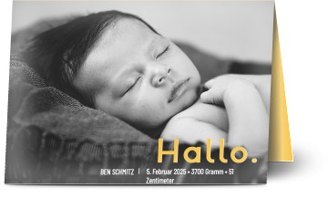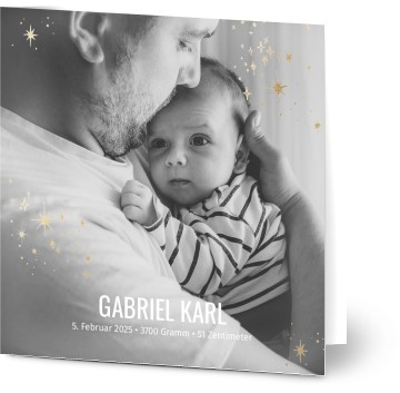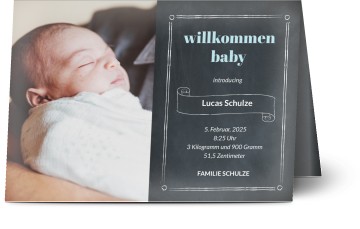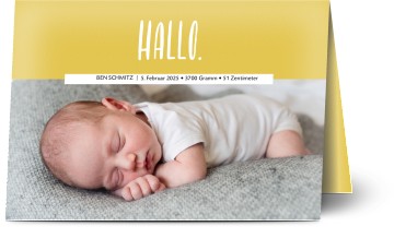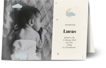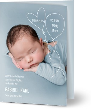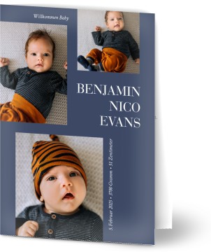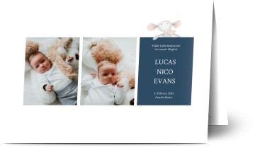 Ein Junge! Um die Geburt Ihres neugeborenen Sohnes zu feiern, dürfen Sie aus unserem breit gefächerten Angebot an Designs für Karten zur Geburt eines Babys auswählen. Egal ob es sich um ein einzelnes Foto handelt, dass Sie kostenlos hochladen und in ein Design integrieren können oder um mehrere Fotos, weil Sie sich einfach nicht entscheiden können, Ihre Ankündigungs-Karten und Glückwunschkarten zur Geburt Ihres Jungens können so entworfen und gestaltet werden, dass sich darin Ihre persönliche Freude und Ihr persönlicher Stil widerspiegeln. Für welches Design der Karten zur Geburt des Babys auch immer Sie sich letztendlich entscheiden, Sie können so lange alle Textelemente immer wieder verändern und Inhalt verschieben, bis Sie zufrieden sind. Sie können mehr Bilder oder noch mehr Text hinzufügen und das Layout verändern – unsere Karten zur Geburt eines Jungen sind vollständig individuell anpassbar. Sie können sicher sein, dass Sie die Geburtsanzeigen für Ihren kleinen Sohn vollständig individuell mit Bildern und Text an beliebigen Stellen gestalten können. Zusätzliche Babyfotos? Zusätzliche Babyfotos sind nie ein Problem: Sie können mit nur einem Mausklick in die Karten zur Geburt Ihres Babys einfach hinzugefügt werden. Sie sind nicht sicher wie Sie die Geburtsanzeige für Ihren Sohn formulieren sollen oder welche Angaben benötigt werden? Wir haben viele Vorschläge und Anregungen für Sie. Bei uns finden Sie sogar ein paar Geburtsanzeigen für Jungen in denen Sie einfach nur den Namen und das Datum ändern müssen – sonst brauchen Sie selbst nichts weiter zu formulieren. Wenn es um Ihre Geburtsanzeige geht, können Sie sich auf Optimalprint verlassen.