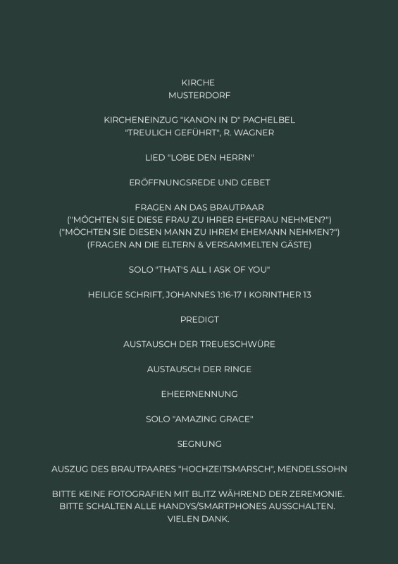 Hochzeitsprogramm