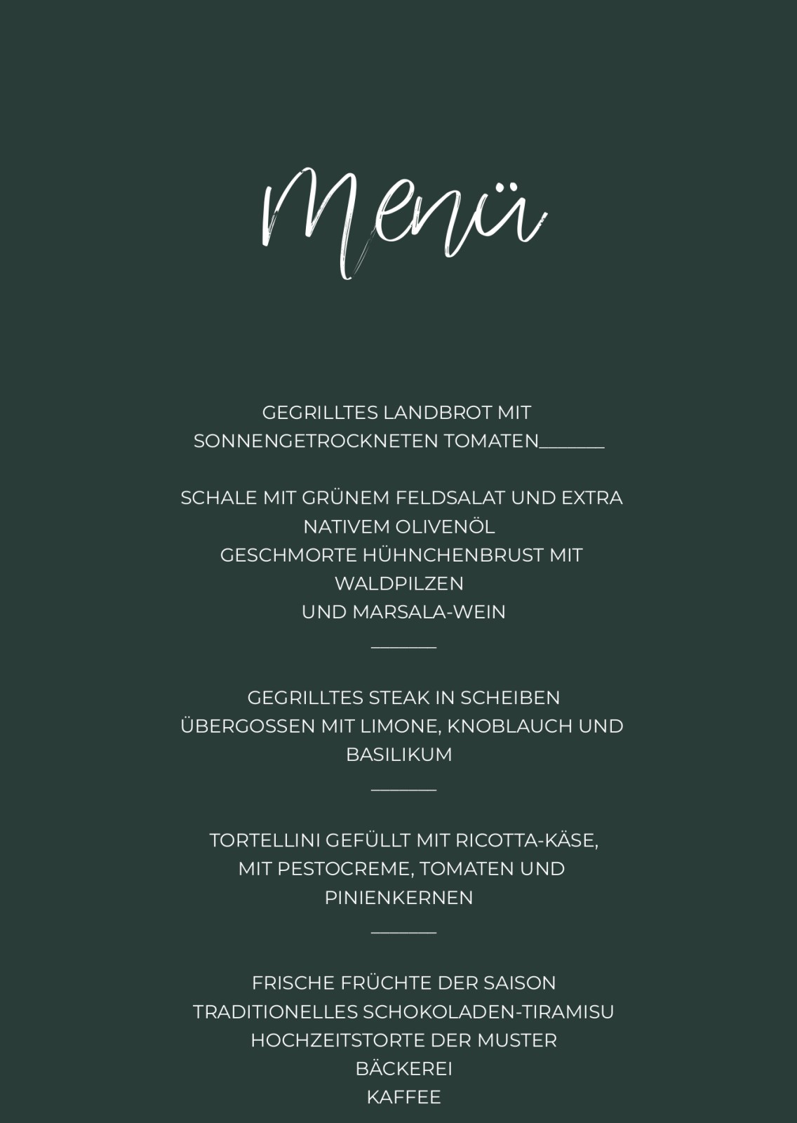 Hochzeitsmenü-Karten