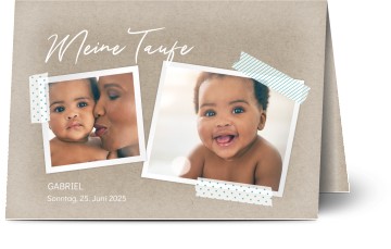 Erstellen Sie moderne Taufkarten und Taufeinladungen um diesen besonderen Tag zu feiern. Mit Optimalprint in Österreich können Sie Einladungen und Karten zur Taufe ganz einfach persönlich gestalten. Selbst gestaltete Taufeinladungen und und Taufkarten können mit einem eigenem Text und Fotos versehen werden und werden so zu etwas ganz Besonderem für Ihre Freunde und Familie. Laden Sie Bilder und Fotos einfach und unkompliziert hoch um Ihre Einladungen zur Taufe damit zu gestalten. Bei Optimalprint finden Sie eine Vielzahl an Taufeinladungen und Taufkarten, wie Taufe für Jungen, Taufe für Mädchen, Taufkarten mit Foto, klassische Taufe, Vintage Taufe und Taufeinladungen und Karten mit Porträt. Sie können auch das Format und Layout bestimmen – horizontal, vertikal, doppelseitig oder einseitig, gefaltet oder ungefaltet, Papiersorte und Größe. Bei Optimalprint in Österreich erhalten Sie auch Dankeskarten und Umschläge, die Sie persönlich gestalten können. Somit finden Sie alles-in-einem für Ihre Taufe wenn es um Druckwaren geht. Optimalprint bietet eine gute, unkomplizierte und kostengünstige Lösung um die Taufe Ihres Kindes zu feiern.